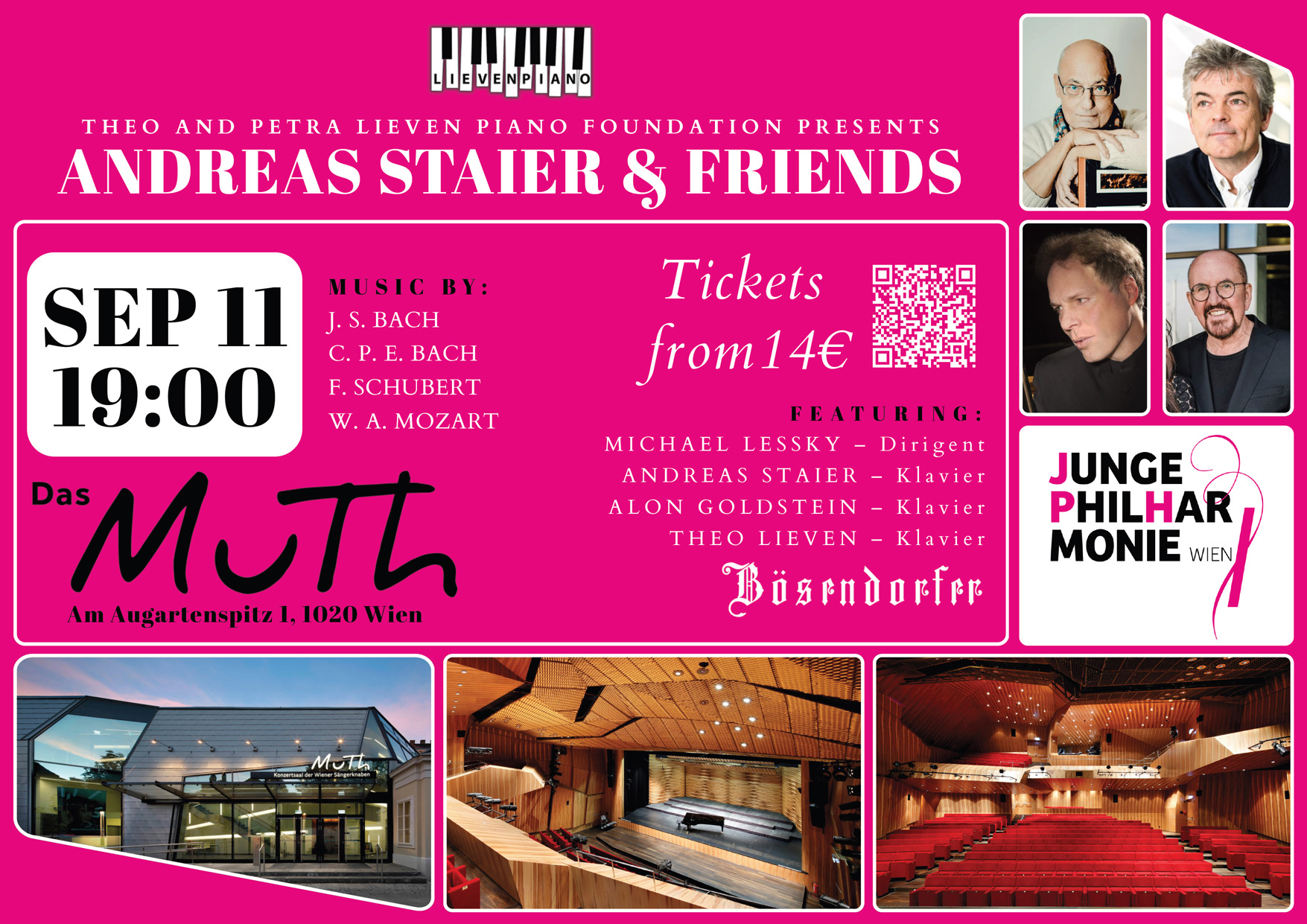 The foundation celebrates its 30th anniversary in 2023. On this occasion, several concerts and master classes are held at the Wiener Musikverein. Two concerts in the Brahms Hall on June 10th with Jean-Marc Luisada, on June 11th with François Dumont; two master classes in the Steinerner Hall on June 10th with François Dumont, on June 11th with Jean-Marc Luisada and, as the crowning event, both Brahms piano concertos with Alexei Volodin as soloist and the Slovak Philharmonic Orchestra conducted by Daniel Raiskin on June 18th in the Golden Hall of the Musikverein.